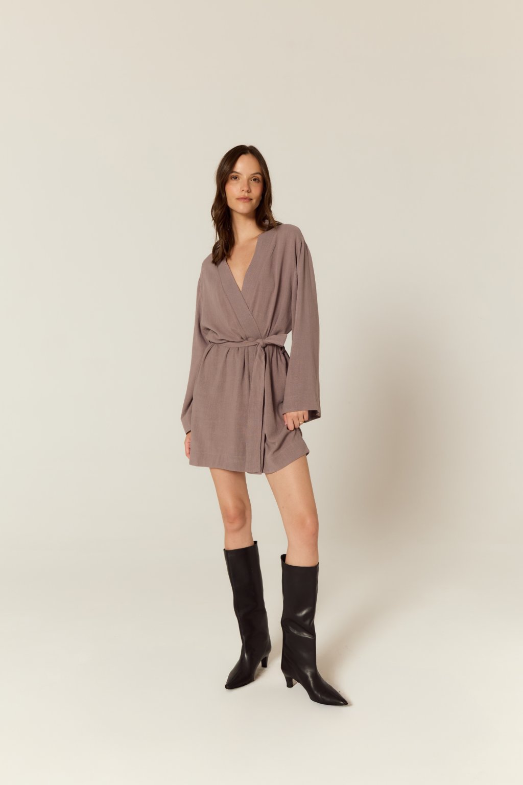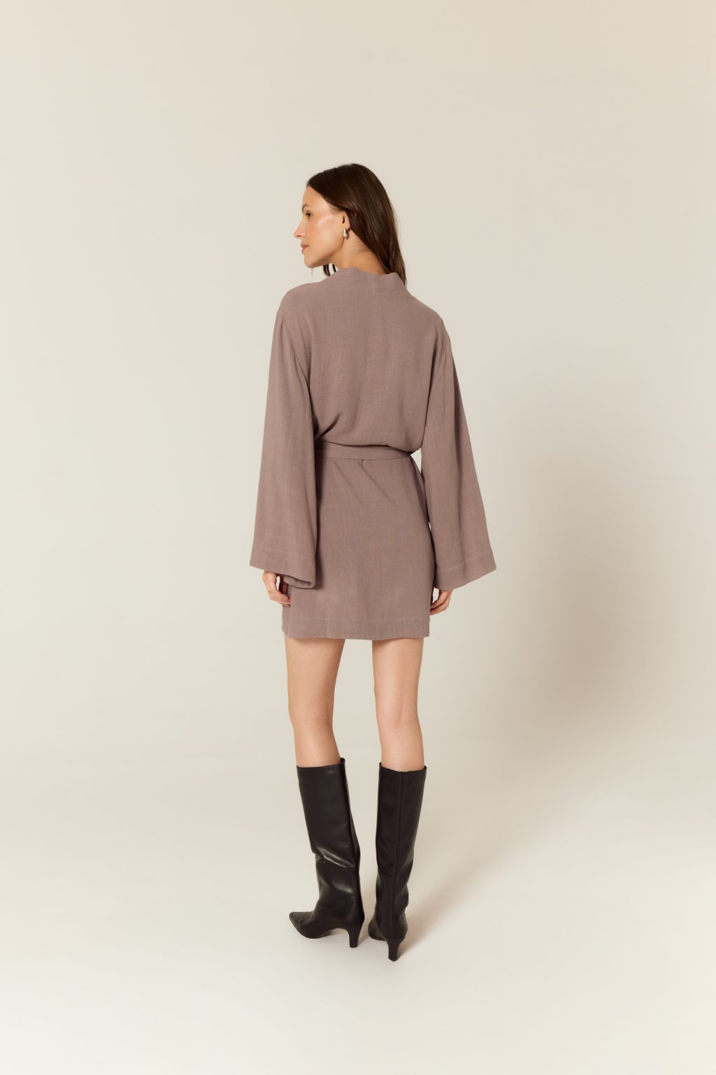 BUBELO, DAMSKA NARZUTKA KIMONO / SUKIENKA Z MIESZANKI WISKOZY I LNU – KOLOR LILAC GREY