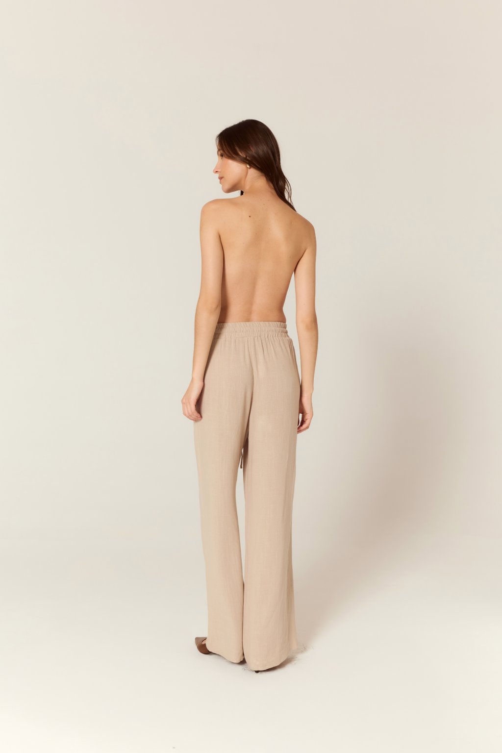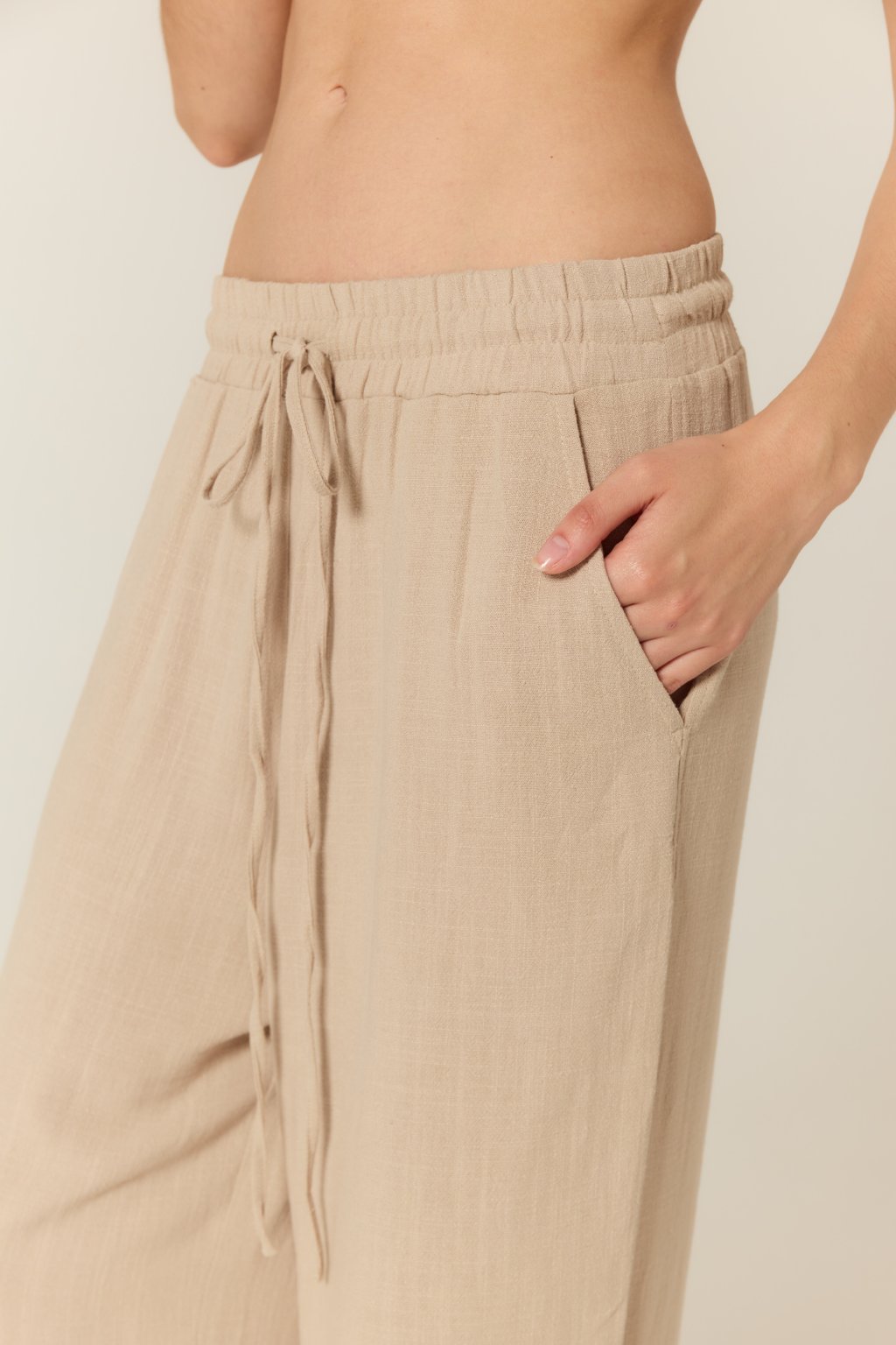 BUBELO DAMSKIE SPODNIE Z SZEROKIMI NOGAWKAMI Z MIESZANKI WISKOZY I LNU – KOLOR SAND BEIGE